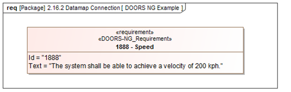 A more complex use case makes use of the Data Map connection. A DOORS NG requirement can be dragged and dropped into a SysML package in the Syndeia dashboard (Figure 3) and a SysML requirement is created with the same id and text. The same process works in reverse, although, in this case, DOORS NG assigns a new requirement id, which is written back to the SysML requirement.