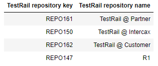 The results for this list are shown in Figure 1. This query was made to the Syndeia database, not the TestRail repository, but we will need a TestRail Repository Key, REPO150 in this example for TestRail @ Intercax, in our next TestRail-specific requests. For more information on the Syndeia-related Python code in this section, see the TechNote, “Queries to Syndeia Cloud Database”. Link shared below.