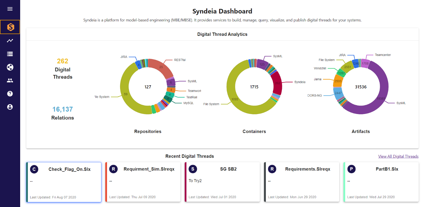 In the remainder of this blog series, we will explore these ideas in greater depth. Part 2 will introduce a specific digital thread and the digital tools, including Syndeia, used to generate and visualize critical metrics. Parts 3 through 7 will show specific examples of metrics for complexity, activity, completeness, consistency, and verification. In Part 8, we’ll discuss and demonstrate the automatic execution of reports, and finally, in Part 9, future steps and challenges.
